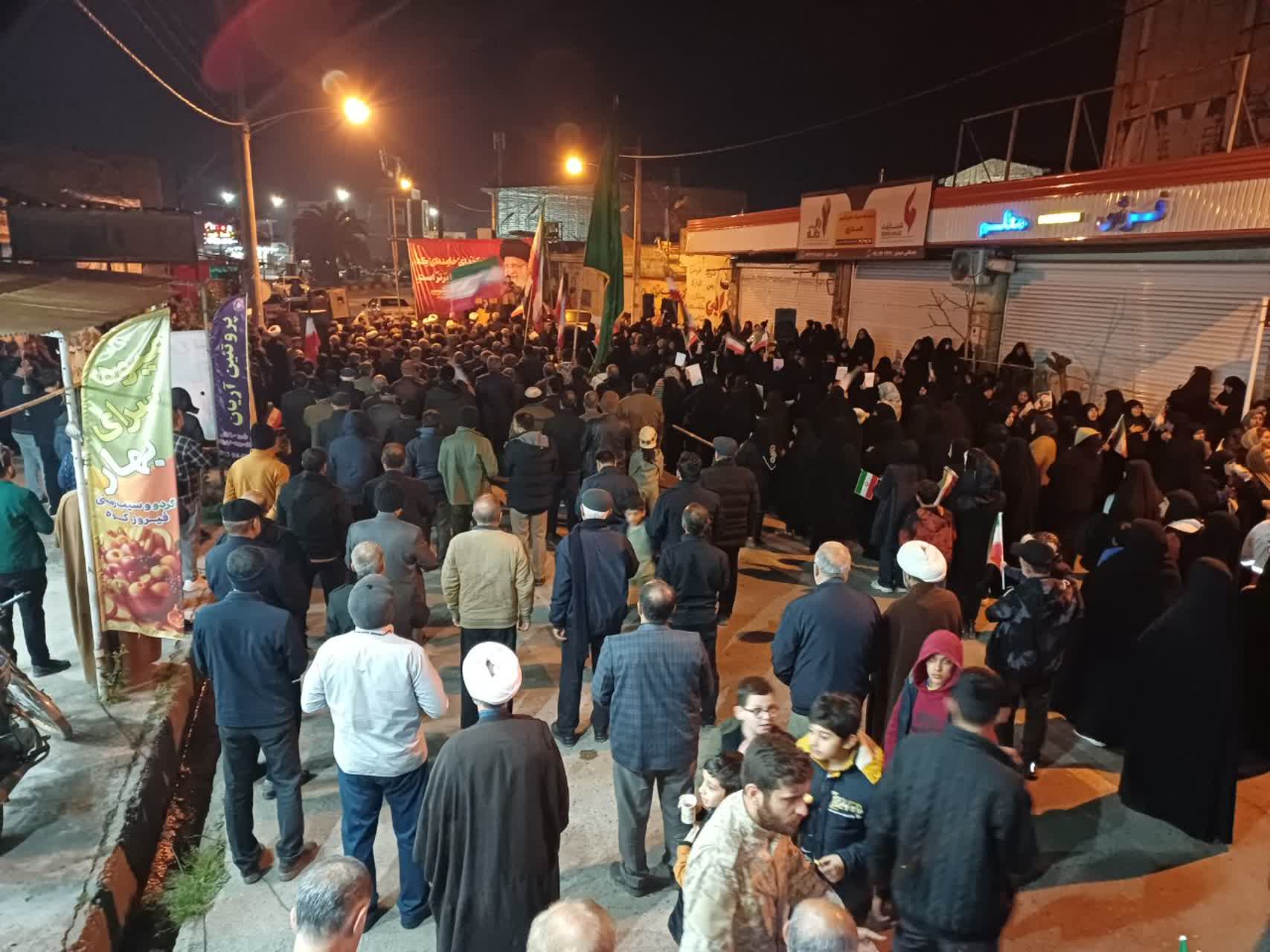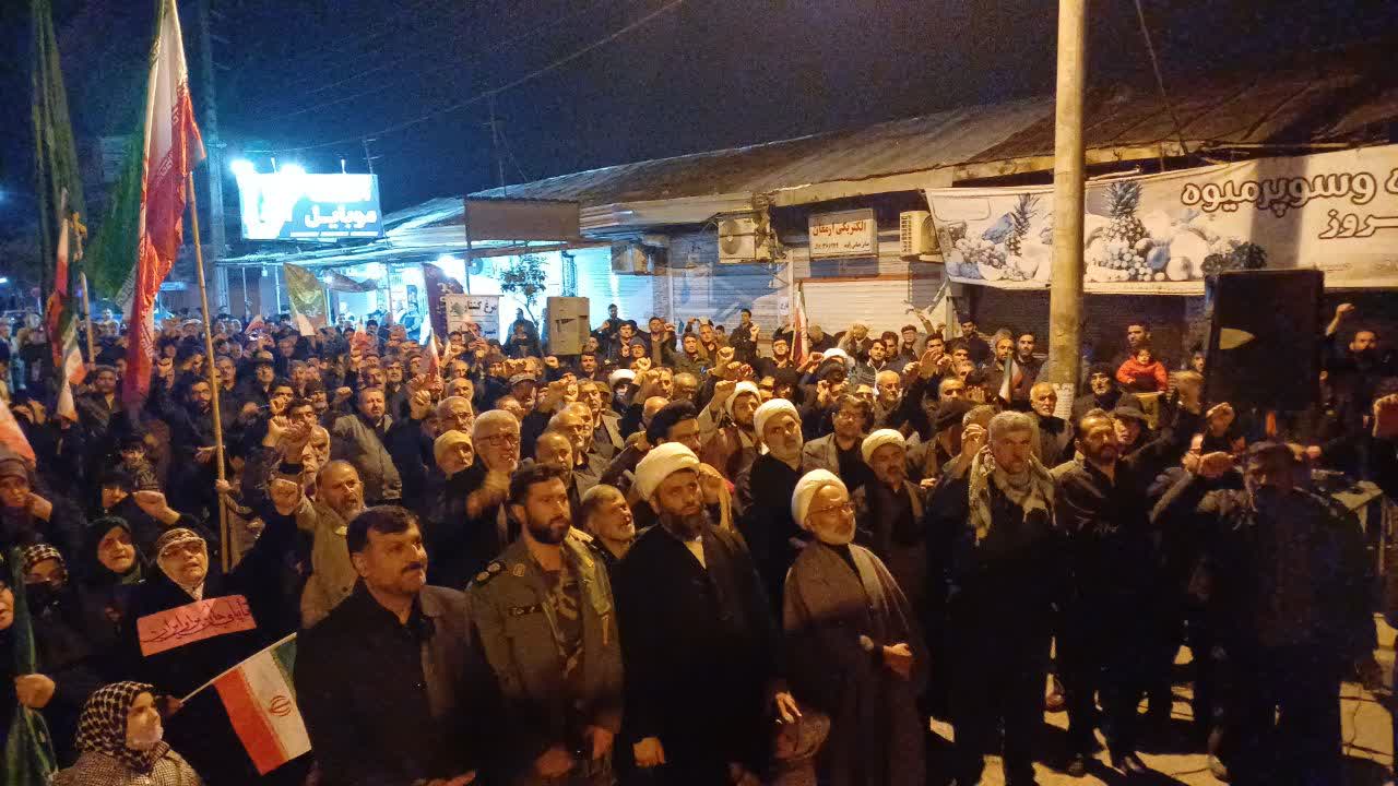 راهپیمایان همچنین با محکوم کردن حمله و اقدامات خصمانه آمریکا و رژیم صهیونیستی علیه جمهوری اسلامی ایران، بر ایستادگی و مقاومت ملت ایران در برابر تهدیدها و توطئههای دشمنان تأکید کردند و اعلام داشتند که خون پاک شهیدان هرگز اجازه نخواهد داد مسیر عزت و استقلال ملت ایران متوقف شود.